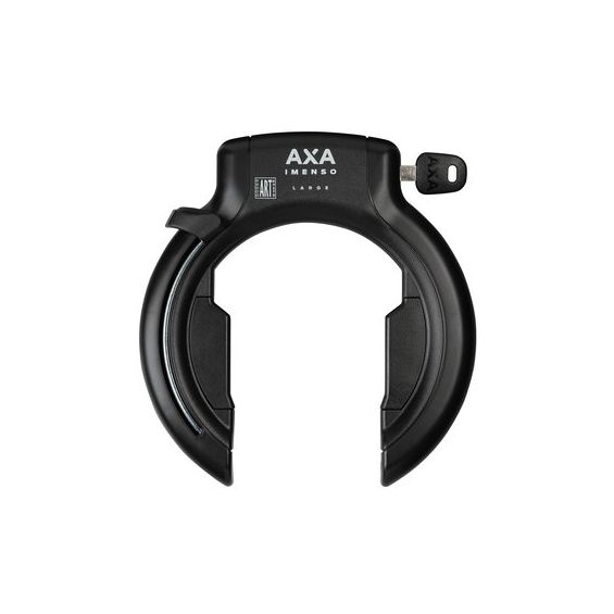 De Axa Imenso Large heeft een extra brede opening van 75mm zodat deze ook past bij brede spatborden of ballonbanden. Dit ringslot heeft de kleur zwart.