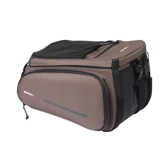 Met de Basil Move bagagedragertas wordt je fietstocht een stuk gemakkelijker. Deze stijlvolle en functionele tas voor je bagagedrager is perfect voor het veilig en georganiseerd vervoeren van je spullen. Dankzij de ruime inhoud van 10 tot 26 liter, het uitbreidbare hoofdvak en de uitklapbare zijvakken heb je altijd voldoende opbergruimte. De tas is gemaakt van waterafstotend gerecycled polyester, waardoor je bagage beschermd blijft tegen een onverwachte regenbui. Extra praktisch zijn de stevige handgreep, de afneembare schouderriem en het elastische vak voor een waterfles. De Basil Move bagagedragertas is verkrijgbaar in zwart en bruin en past perfect bij elke fiets. Dankzij de klittenbandbevestiging bevestig je de tas eenvoudig op je bagagedrager. Daarnaast is hij compatibel met MIK- of Rack time-adapterplaten (niet inbegrepen), zodat je hem flexibel kunt gebruiken. Belangrijkste eigenschappen:
