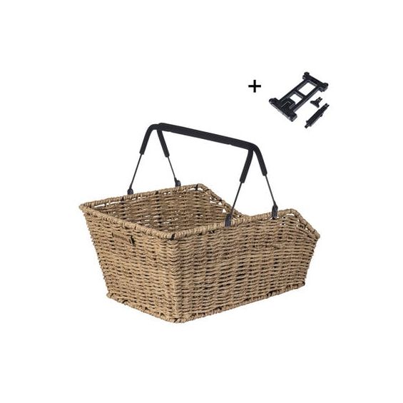 Geen tassen meer aan je schouder, stuur of op je rug Stevig materiaal dat lang meegaat Eenvoudig vastgemaakt aan je fiets Ideaal voor E-bikes Afmetingen: 46 x 34 x 26 cm (Buitenwerkse maten) Bevestiging: MIK-adapterplaat Materiaal: kunststof rattan Kleur: seagrass