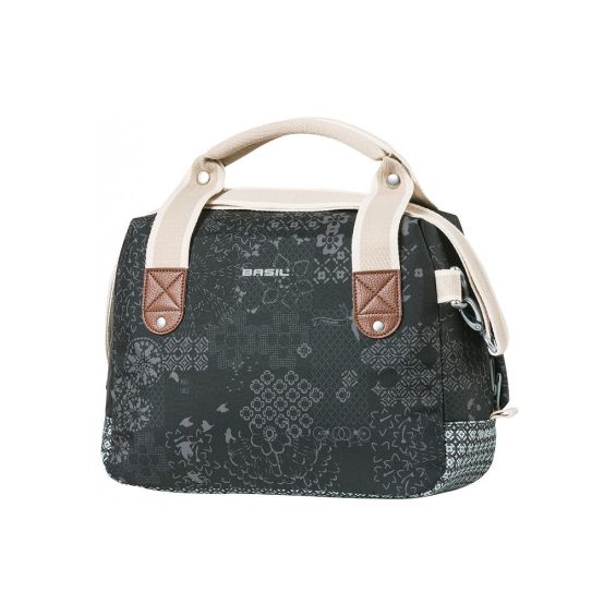 De Basil Bohème City bag is een elegante groene hand-, schouder- en stuurtas in èèn, met stijlvolle bohemien print. Een fietstochtje naar het terras in de stad of een dag winkelen met die vriendin, je kan al snel niet meer zonder deze Boheme City Bag. De tas heeft een stevige binnenvoering, een ritsvak en een inhoud van 8 liter. Ruimte genoeg voor je portemonnee, een flesje water en andere benodigdheden. Door het waterafstotende polyester blijven je spullen droog tijdens een kleine regenbui. De kunstlederen details en de vrolijke bohemien print met grafische kruissteekpatroon en vogelsilhouetten, zorgen voor een trendy uitstraling. Door het afneembare schouderhengsel, is de tas ook als schoudertas te dragen. De tas is vast te maken dankzij de voorgemonteerde Basil KF adapterplaat. Daarmee klik je de tas eenvoudig op bijvoorbeeld de Basil KF stuurbochthouder. Dit systeem is niet inbegrepen. In het donker ben je beter zichtbaar door de reflectiedetails. De Basil Boheme City Bag is verkrijgbaar in meerdere kleuren waaronder rood en blauw. De tas is onderdeel van de Basil Boheme collectie. Zo heeft deze Boheme lijn ook een dubbele tas, een grotere enkele tas en bijpassende fietsaccessoires. Eigenschappen: