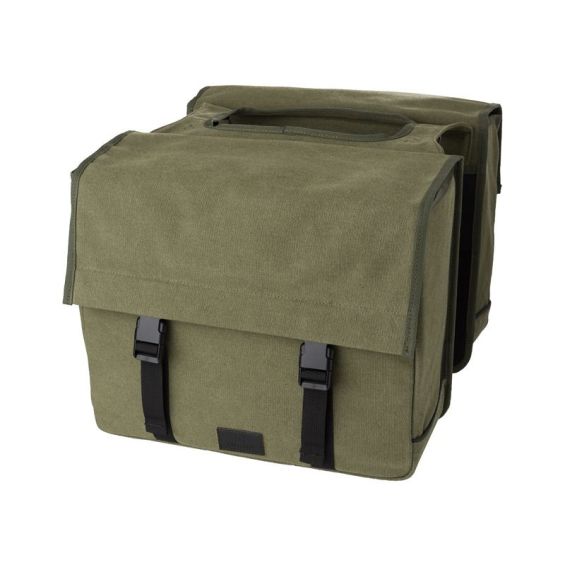 De robuuste fietstas is vervaardigd van waterafstotend washed canvas. Het ruime hoofdvak sluit eenvoudig met klikgespen, terwijl de onderkant en zijkanten verstevigd kunnen worden met de meegeleverde verstevigingsplaten. De kleppen van de tas zijn voorzien van regenoren om inregenen te voorkomen.