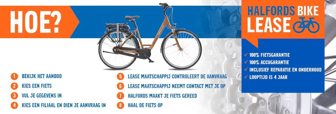 Het werkt heel simpel. Op Halfords.nl of in de winkel maak je een keuze uit de gewenste fiets. Ben je in de winkel? Dan vul je samen met de verkoper je gegevens in. Heb je online een fiets gezien? Dan vul je het bestelformulier in. In beide gevallen neemt het Service Care Center namens Halfords dan zo snel mogelijk contact op om de bestelling compleet te maken. Is alles in orde en zijn al jouw vragen beantwoord? Dan wordt de fiets door de fietsenwinkel gereed gemaakt. Je ontvangt vervolgens een berichtje wanneer je de fiets kan ophalen.
