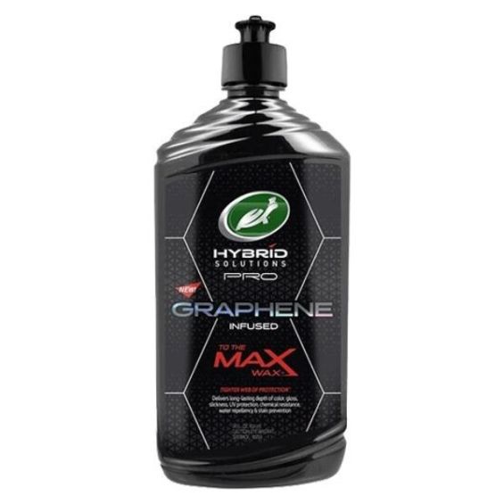 Turtle Wax Hybrid Solutions Pro to the Max Wax is een gemakkelijk aan te brengen en uit te poetsen vloeibare wax gevoed met graphene, waardoor een sterk web van bescherming wordt gecreëerd. Dit zorgt voor verbazingwekkende kleurdiepte, glans, chemische bestendigheid, waterafstotendheid samen met verhoogde UV-bescherming en gladheid die helpt water en vuil af te stoten. Hybrid Solutions Pro to the Max Wax kan gebruikt worden op velgen en glas.