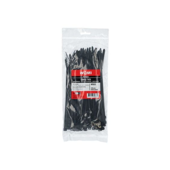 Womi W553 Universele Zwarte Kunststof Kabelbinders (200mm x 4,8mm)